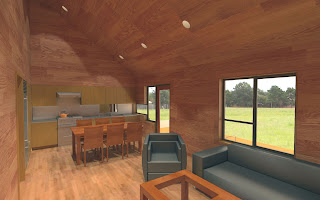 庇の下の出っ張りをなくした。ウッドデッキに直結する収納を設けた。主寝室にウォークイン・クローゼットを付け足した。リビングやキッチンなどは前回より広くなった分、北側部分(風呂、トイレ、書斎など)は少し縮小。